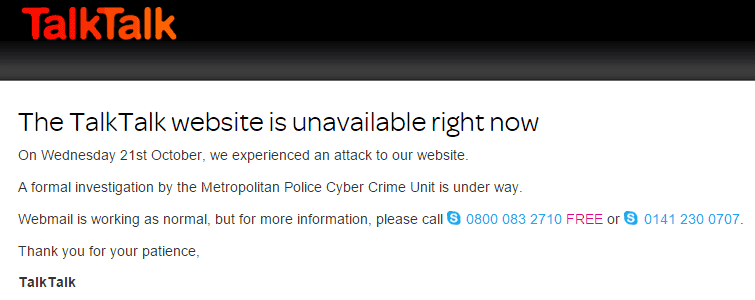 However, this only appeared after news went public from Talk Talk about the breach.