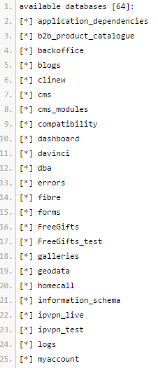 Again, there is no evidence or proof that this list is complete or accurate. However, there are tables in there called myaccount and homecall which would seem consistent with an expected dataset.